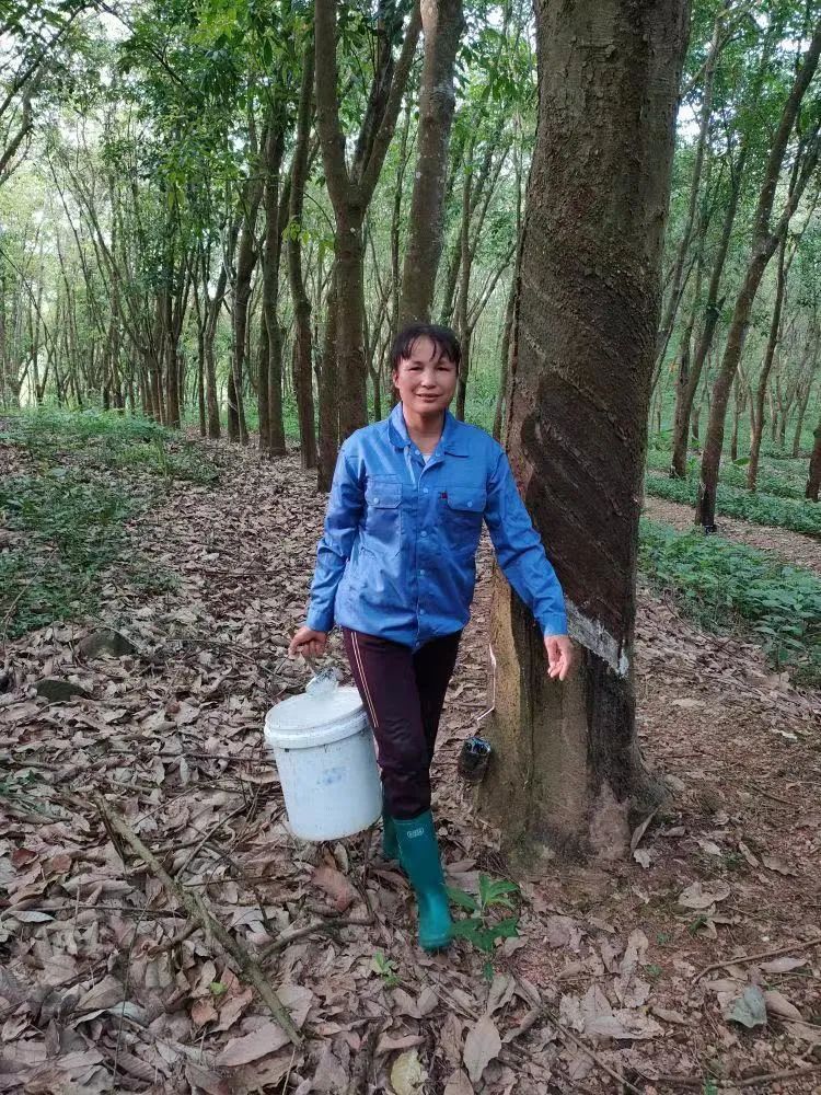2004年,趙坤霞入農墾割膠,由于對橡膠樹的熱愛,她將低產樹培養成高產樹,個人產量從2004年的3.5噸到2019年的8噸,再到2022年的13.9噸,產量持續提升。當上隊長后,趙坤霞帶領大家修膠園道路,為職工減輕工作負擔。她還主動把高產樹位讓給其他膠工,繼續承包低產膠樹培養,在她的帶領下,全隊干膠產量大大提高。